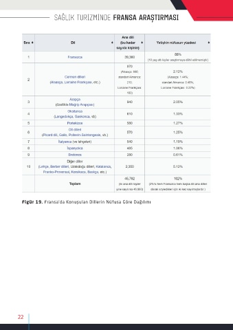 Figür 19. Fransa’da Konuşulan Dillerin Nüfusa Göre Dağılımı 22
