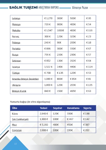 Ülke Tedavi Seyahat Konaklama Sigorta