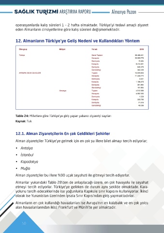 12.1. Alman Ziyaretçilerin En çok Geldikleri Şehirler